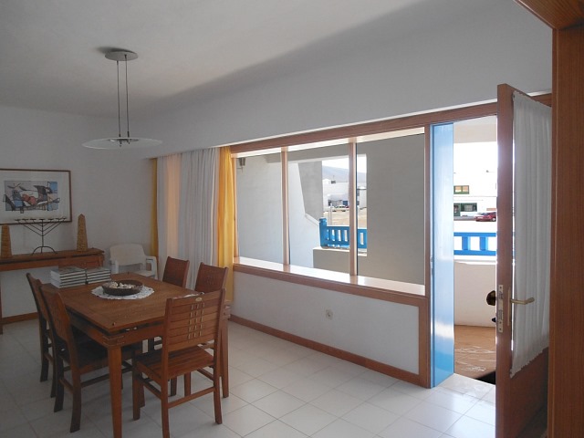 The living room opens via two large windows to the Ocean, presenting a stunning view of the sea and the sandy Beach of Famara. On the south side of the apartment there is a large loggia, over which the apartment also is accessed via an external staircase. The house is located directly on the Atlantic, to the sandy beach you have to walk about 200 meters.
